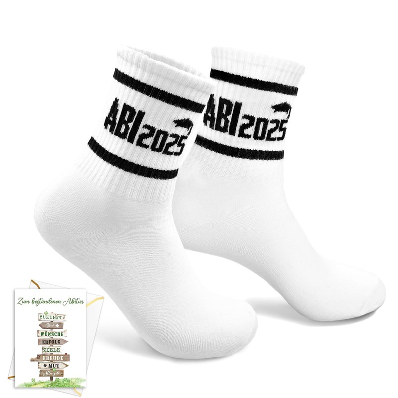Abitur 2025 Geschenke für Mädchen Junge, Abi Socken mit Glückwunschkarte, Abschluss Bestandene Prüfung Geschenk Glücksbringer, Abitur karte, Tennissocken Sportsocken Universelle Größe