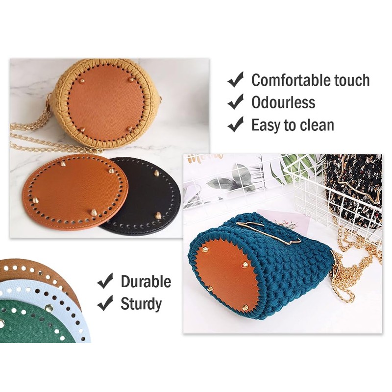 - Ideal accessories: bag base for crocheting leather is very suitable for DIY process projects and bag repairs. Its exquisite appearance allows you to easily combine different round bags to create your own unique bag. Hand woven bag pad is an ideal choice for crocheting and replacement for bottom bags.
