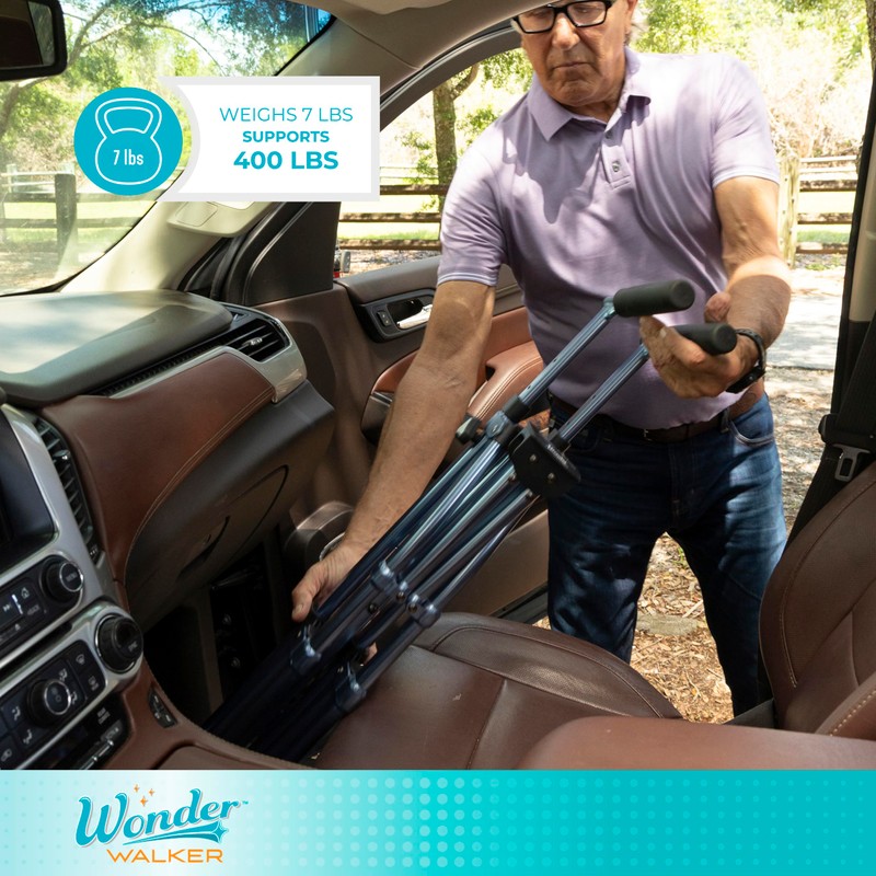 - Travel Friendly: Use the Space Saver Walker when traveling, running errands, or getting around the house; the lightweight, 7-pound frame is easy to load and unload from a vehicle but sturdy enough to support up to 400 pounds
