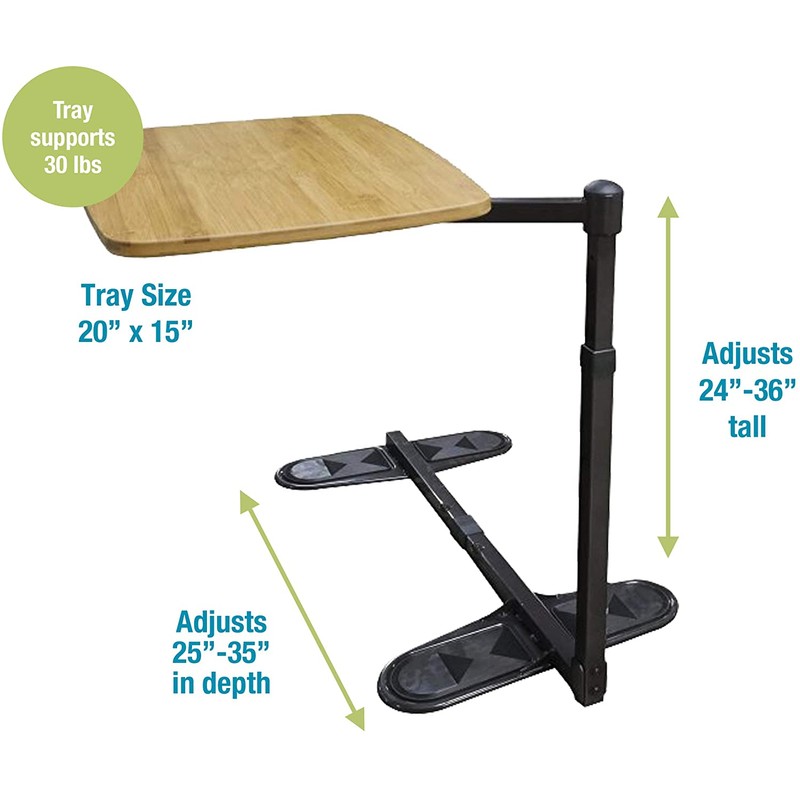 - Fully Adjustable: The tray height adjusts from 24 to 32 inches; base length adjusts from 25 to 35 inches; please reference our assembly video and infographics to determine if the Universal Swivel Tray is compatible with your furniture