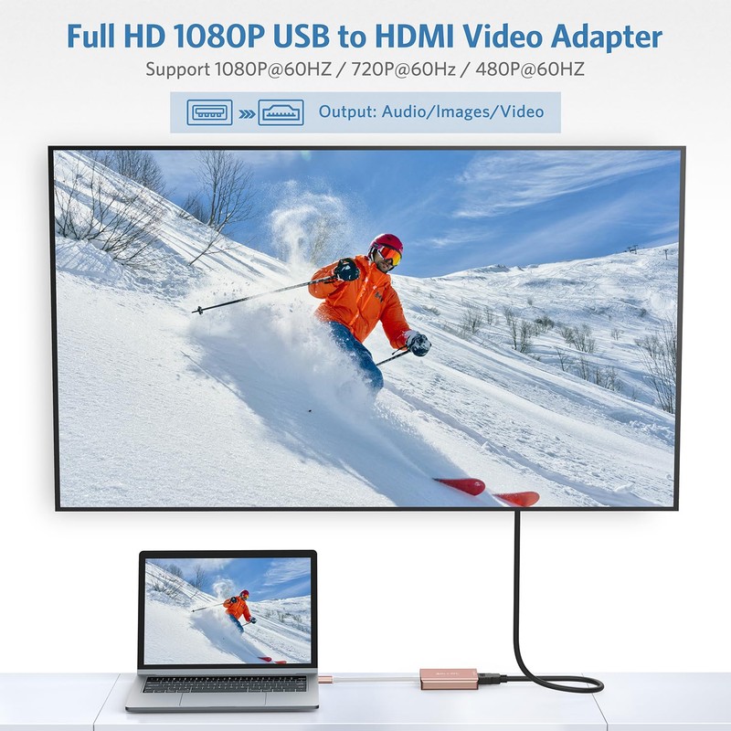 • 【Upgraded USB to HDMI Adapter】This upgraded USB HDMI adapter can connect a computer via USB interface to an HDTV, monitor, or projector with an HDMI interface. We have upgraded both the chip and the shell(aluminum exterior) with premium quality to be more compatible and durable to use.