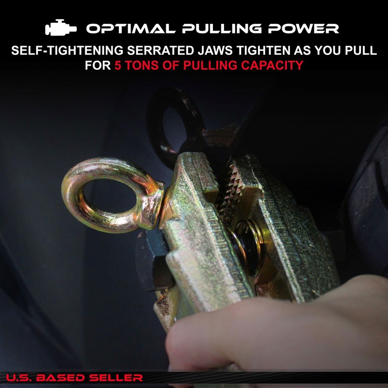 - [More Pulling Power]: Outfitted with self-tightening serrated jaws this auto body repair pull clamp has a 5-ton (4.5mt) pull capacity; The jaws tighten as you pull