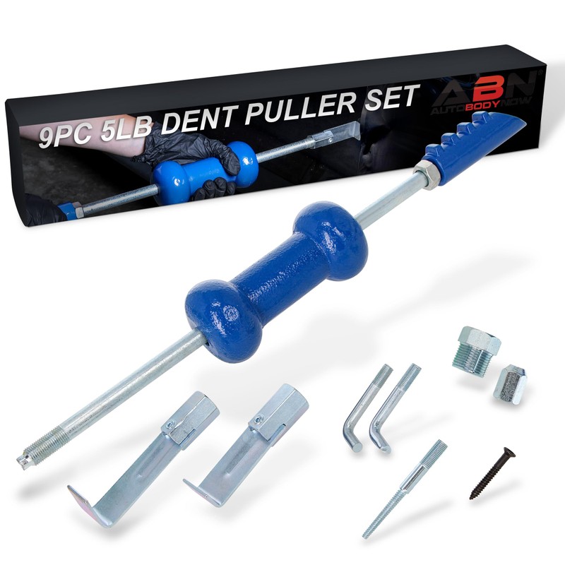 - Practical: Use the ABN Auto Slide Hammer 9-Piece Set, 5lb Pound – Dent Puller Kit for Small Hail Dent Removal on Car Body to pull out deep and long dents on the body of your vehicle