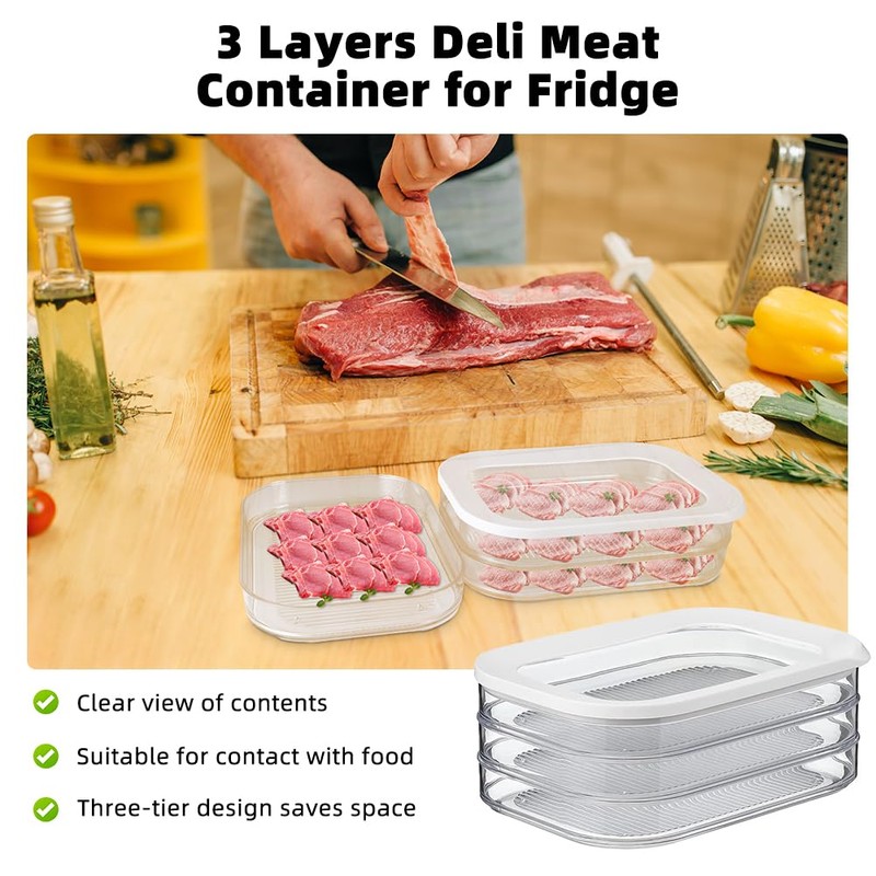 - Ultimate Freshness Assurance: Our deli meat container set for the fridge ensures your deli meats, cold cuts, and cheeses stay fresher for longer. With innovative design of our deli meat containers with lids, each layer snaps shut securely, sealing in freshness and preventing cross-contamination.