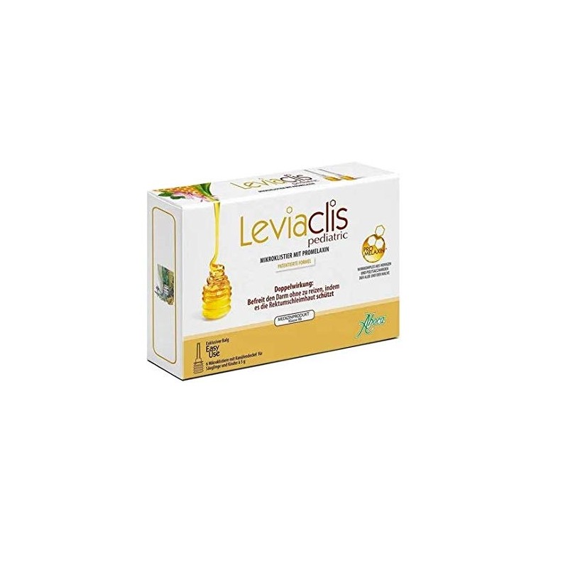 Product descriptionConstipation is a frequently-occurring and often-underestimated disorder which can affect anyone: children, adults, and above all the elderly. Maintaining the natural balance of the intestine is essential to overall health. It is important that a product for emptying the bowel respect the body's physiology. This is why Aboca has developed Leviaclis, a honey-based micro-enema with an evacuative action that induces a non-irritating stimulus to activate defecation and, moreover, exerts a valid protective action on the rectal mucosa. Leviaclis promotes bowel movement and protects the rectal mucosa The Leviaclis formulation favors evacuation and makes stool easier to expel. Moreover, thanks to the mucus-like properties and the viscosity of the formulation, Leviaclis Melilax protects the rectal mucosa during stool passage. Thanks to these actions, in combination with the antioxidant action of the components, Leviaclis can protect the rectal mucosa and contribute to favoring the evacuative process. The protective action is especially important, since, in case of constipation, the already-delicate rectal mucosa is easily irritated by passage of dry and hardened stoolsIngredientsPromelaxin complex of honeys and Aloe and Mallow polysaccharidesDirectionsApply a few drops of the product to the perianal area and gently insert the nozzle into the rectum