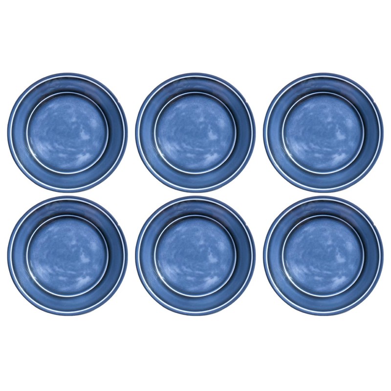 - Includes 6 dinner plates, 10.5" diameter; Abode Homewares Madison Blue Collection: featuring the look of and feel of glazed ceramic but in break-resistant melamine, solid blue interior and exterior; coordinates with Lemon Orchard Collection; medium weight melamine