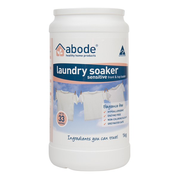 Abode’s High Performance Laundry soaker is strong enough to remove the toughest of stains and whiten whites!