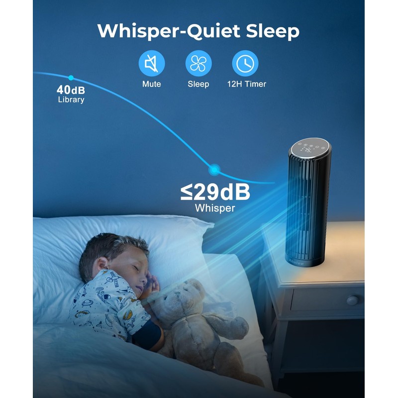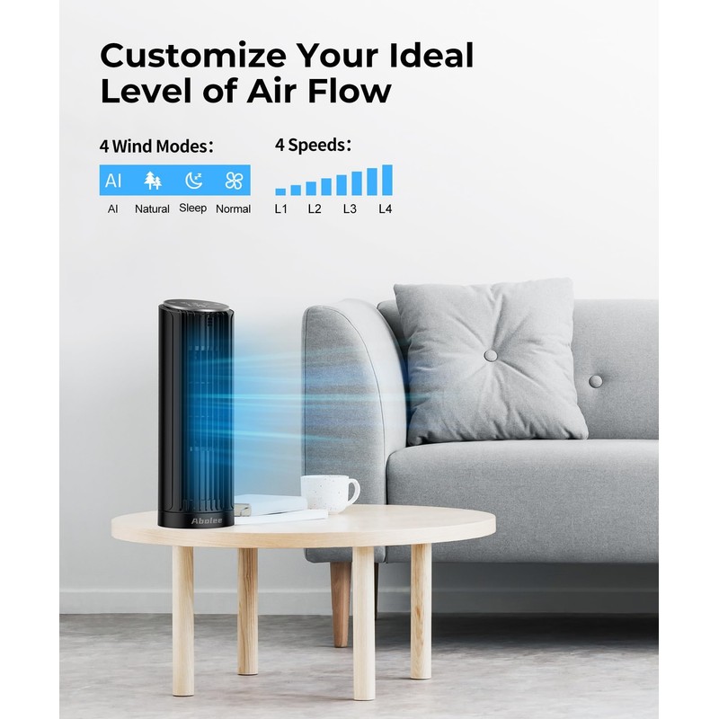 - Customizable ComfortFeatured with 4 modes (AI/Normal/Natural/Sleep) and 4-speed options provide a tailored cooling-off experience to beat the heat. The personal fan comes with 70 widespread oscillation, sweeping more areas in the room with a smooth breeze for effective personal cooling. Mute mode & 12h timer which are designed to get a restful sleep whenever you need it.