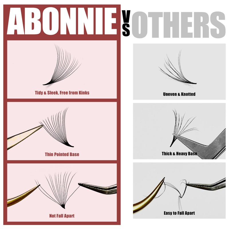 - 【Dramatic Effect】 ABONNIE premade fans create eye-catching results for your client's lashes, help your client's lashes stand out from the crowd with a bolder, thicker, more voluminous lash look, volume lash extensions that look like your own lashes. Suitable for professional salon artists to bring out the depths of your eyes for you and your beautiful clients.