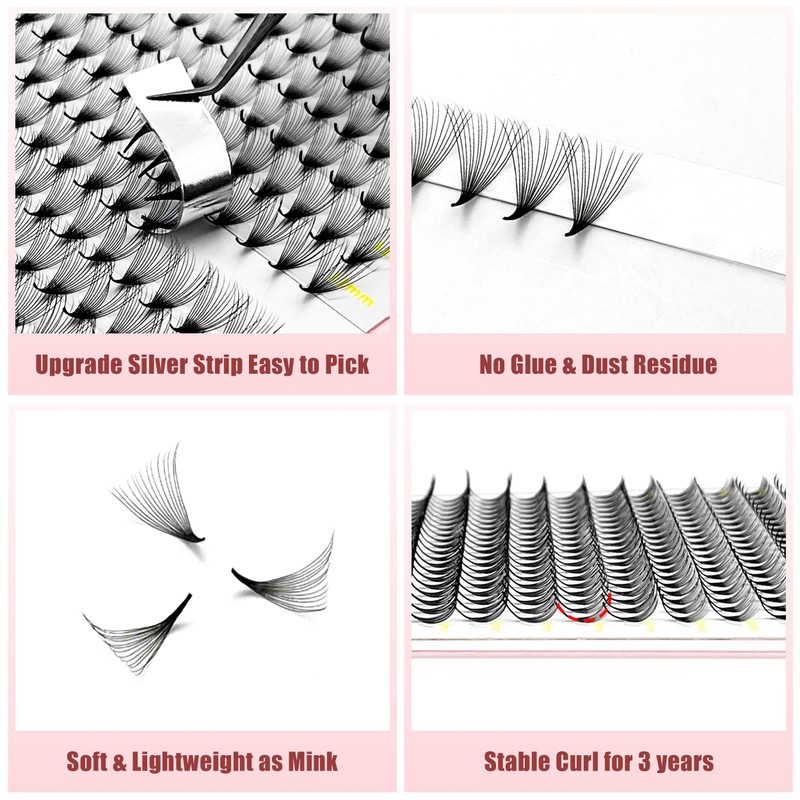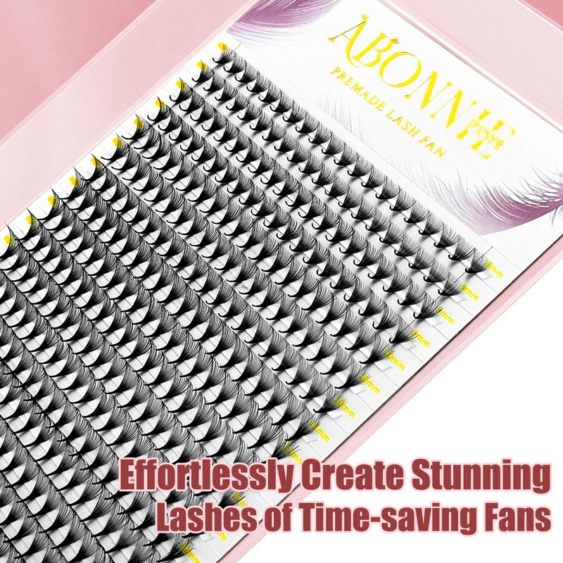 - 【Pointed Base & Not Fall Apart】ABONNIE premade fans manufactured with state-of-the-art technology, the unique double-heated bonding method ensures that the lash fans won't fall apart when you pick the fans up or pick up the lash strip. The lash fans for eyelash extensions has point base, no foreign body sensation in the eye, better fit to your natural lashes.