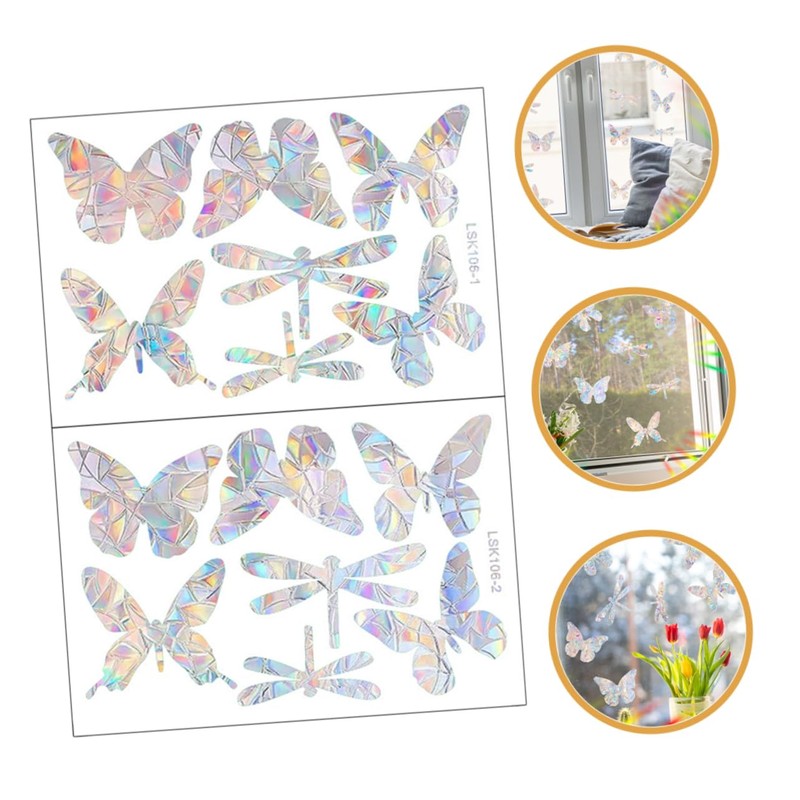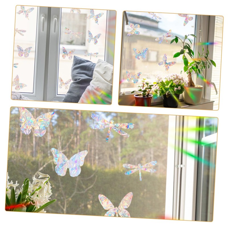 ABOOFAN 3sets Butterfly Window Stickers Bird Strike Decals for Home Office Decor Catch Sunlight Refract Light into Rainbows