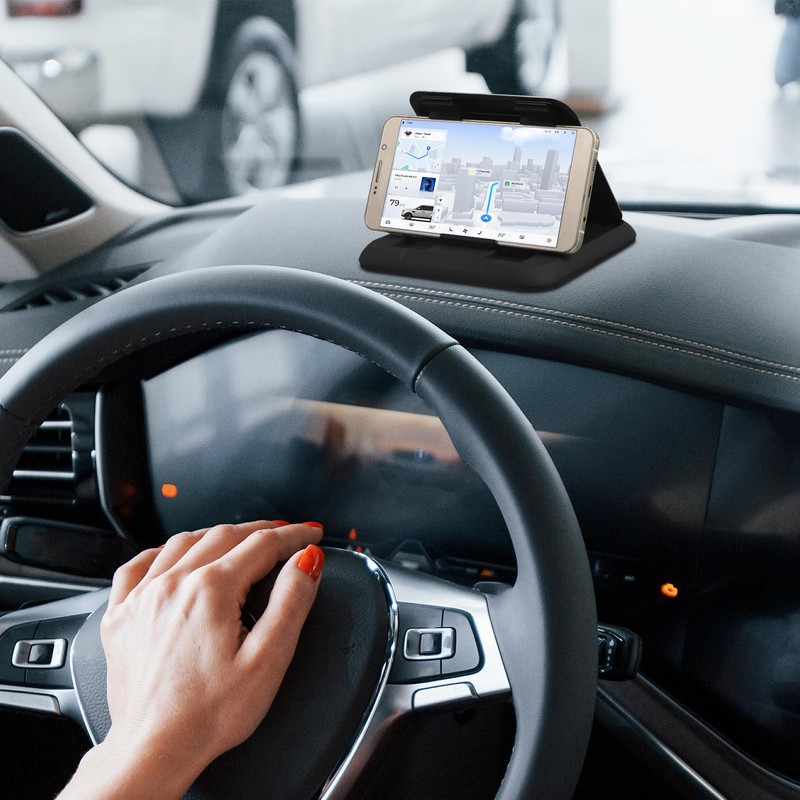 (3-Level Adjustable Silicone Pad) The top of the smartphone stand is equipped with 3 adjustable silicone pads and the bottom of the silicone pads for fixing the device securely, and there is almost no chance of the holder or smartphone falling off due to vibration when driving. The adhesive will be more sticky and will not fall off even on engine vibrations or bumpy roads.