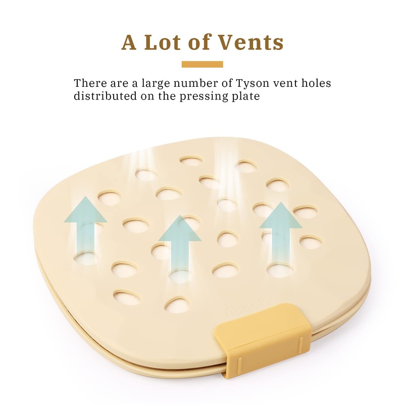 - A lot of Vents: There are a large number of Tyson vent holes distributed on the pressing plate, and the water evaporated during heating is quickly released. Designed to release water from flowers, leaves, plant materials, plants, and herbs, allowing them to dry quickly
