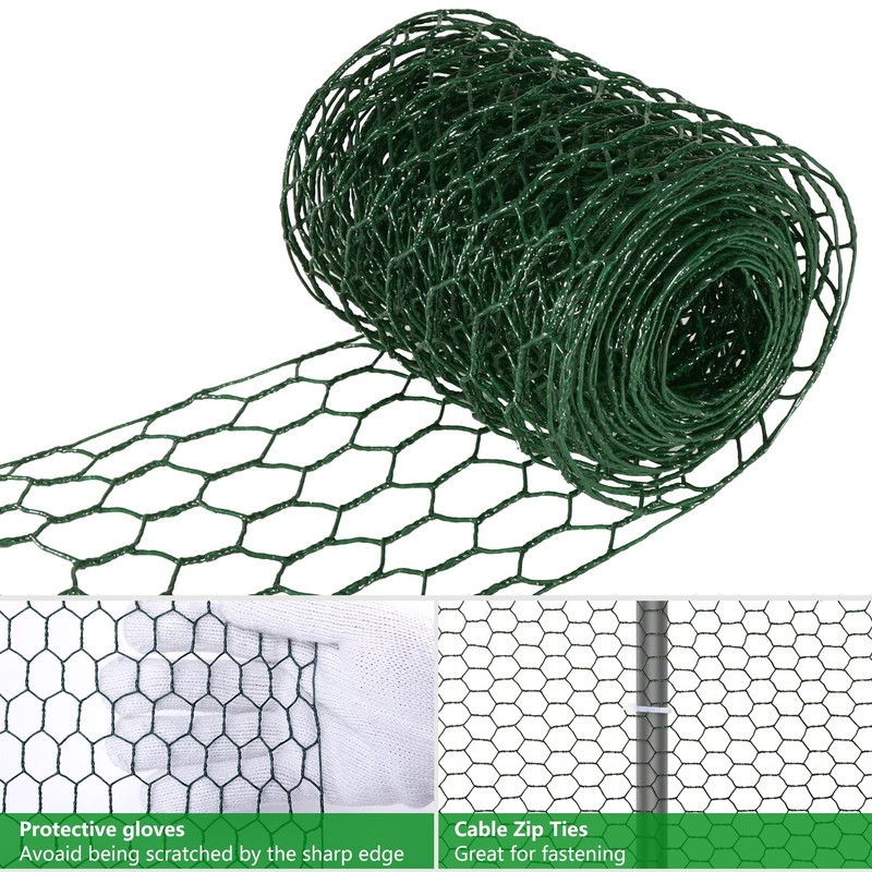 - Garden Project: Galvanized hexagonal chicken netting wire is great for gardeners. Let the curious critters be far away from surrounding plants. The green PVC coating makes it look much nicer in the garden