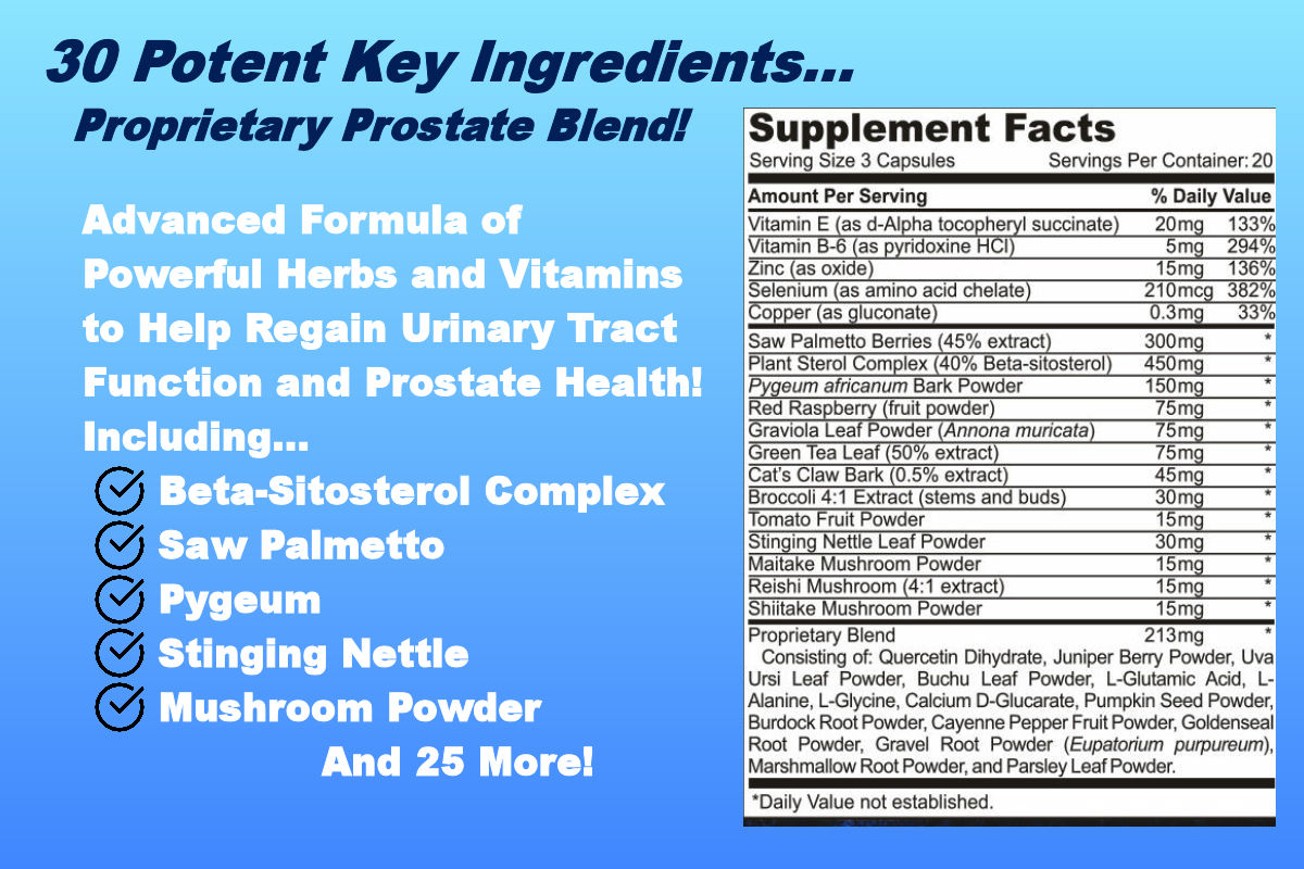 Beta-Sitosterol, Graviola, Pumpkin Seed, Pygeum, Red Raspberry, Saw Palmetto
