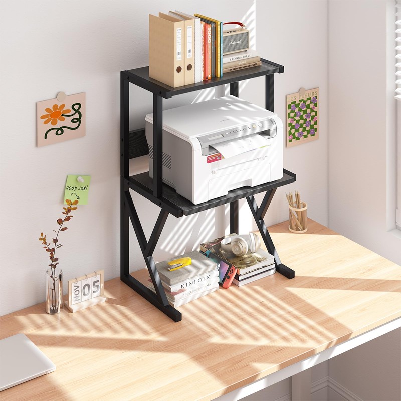 - 【Space Saver】Size :17.1"x11.8"x23.6"(H/W/H), space-saving 2 tiers design increases storage capacity. You can organize office supplies (paper, notebooks, documents) on the bottom tier and place laser printers on the top layer. The desk shelf will make more space for you to work and keep your desk clean.