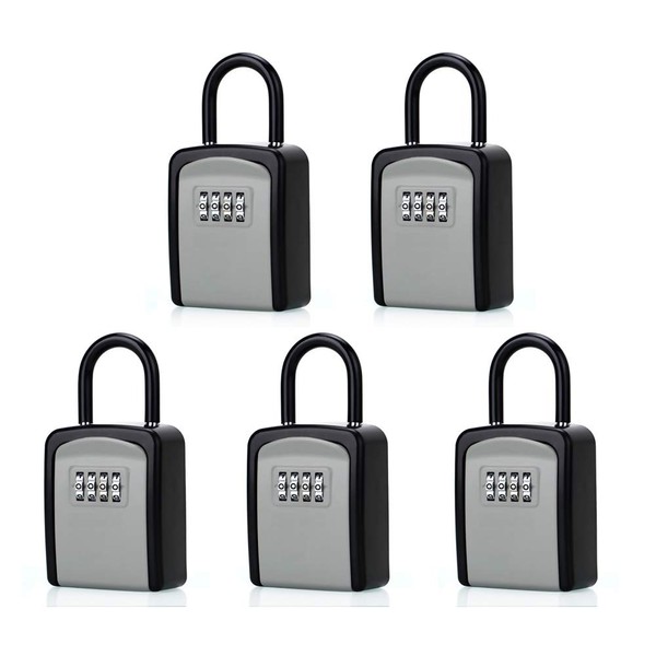ABRA FOX Key Lock Box, Combination Lock box with Code for House Key Storage, Combo Door Locker (Black-5pack)