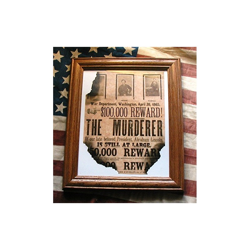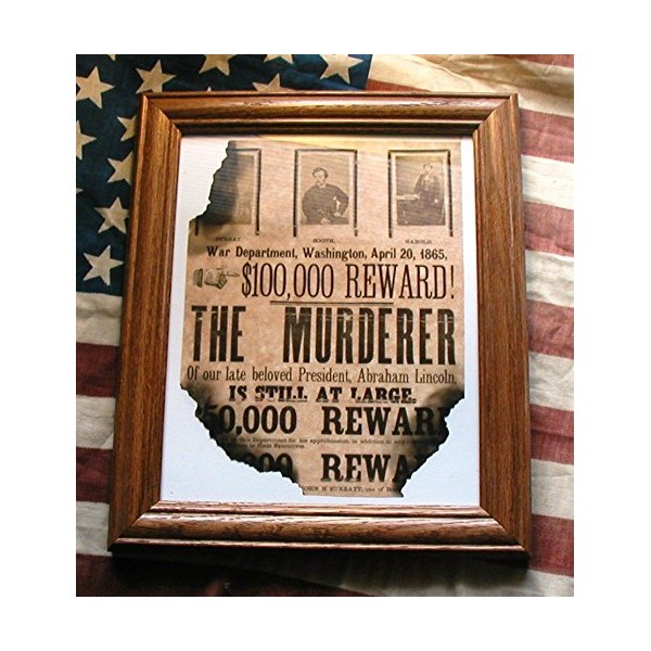 - ABRAHAM LINCOLN ASSASINATION, John Wilkes Booth Wanted Poster Antiqued Parchment