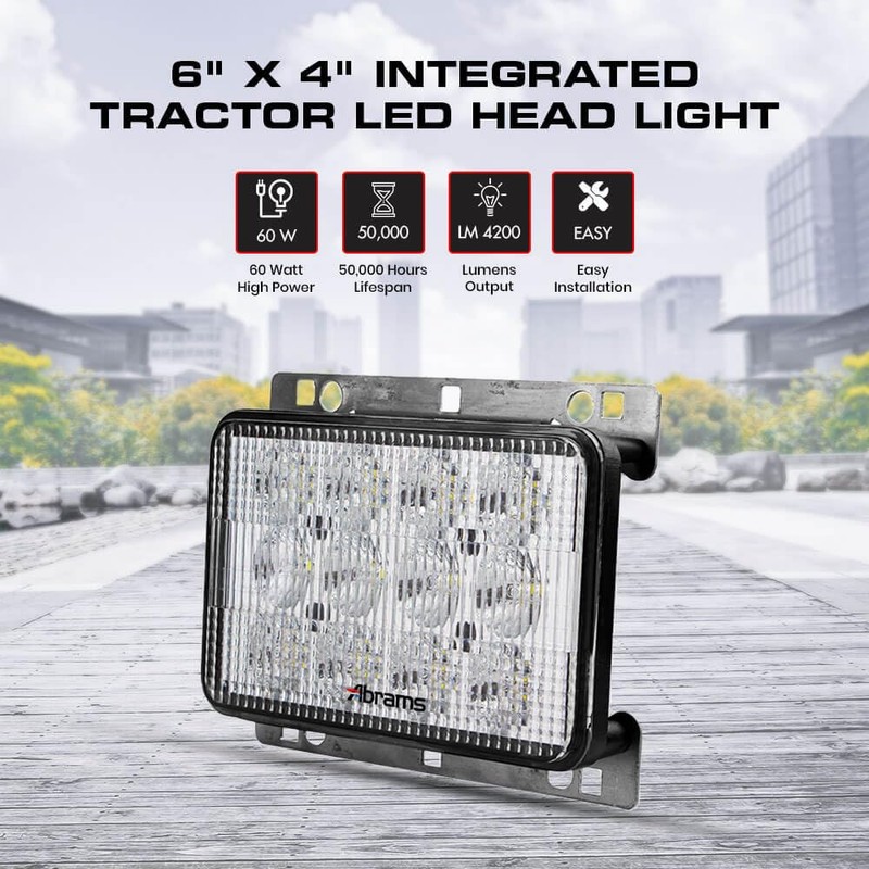 Abrams 6" x 4" Integrated Tractor LED Head Light [Rectangular 60W] 12 x 5W Cree Super Bright [4,200 Lumen] Replace OEM Tractor LED Light for JohnDeere Combine Cotton Picker Forage Harvester Windrower