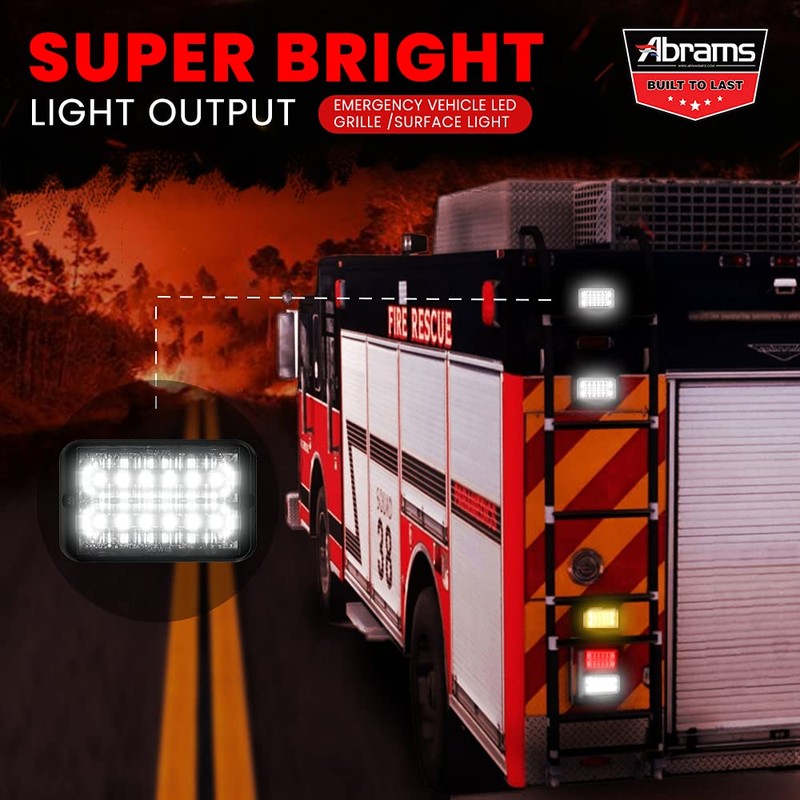 Abrams SAE Class-1 Bold 12 [White] 36W - 12 LED Emergency Vehicle Truck LED Grille Light Head Surface Mount Strobe Warning Light