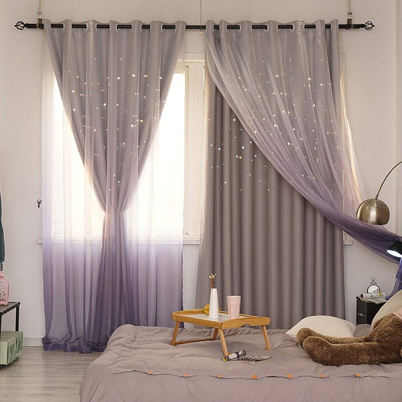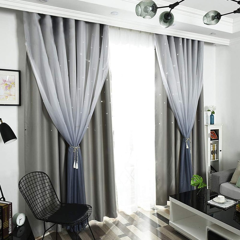 • Package Included: 1 panel hollow-out stars blackout curtain with Gradient sheer voile attached