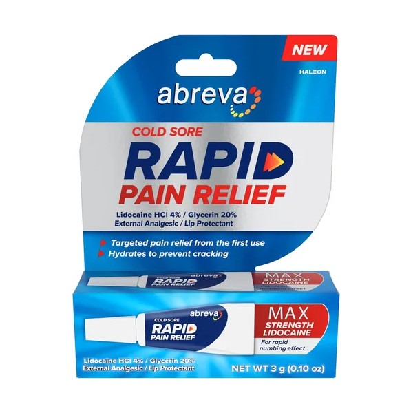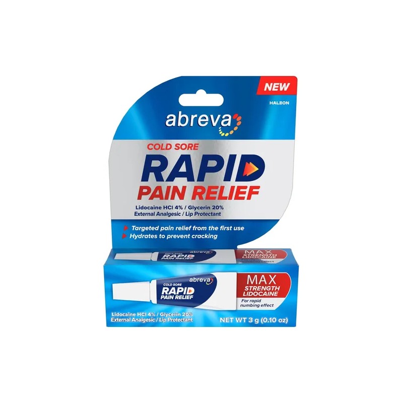 Abreva Rapid Cold Sore Treatment (3 g) es una crema de acción rápida para tratar el herpes labial. Su fórmula está diseñada para aliviar el dolor, ardor, hormigueo y picazón, ayudando a acortar la duración de los brotes.
