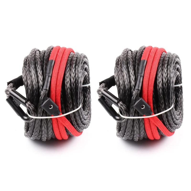 Abrillvt 2pcs 20500LB 3/8 x 95 Synthetic Winch Line Cable Recovery Rope for ATV SUV UTV