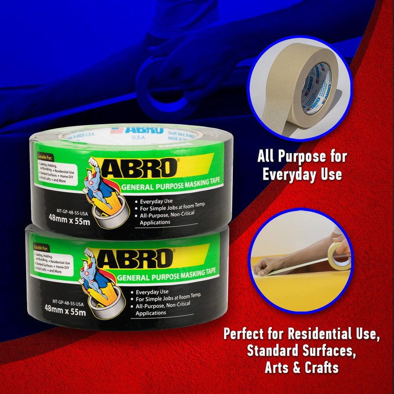 - ADHESIVE PRECISION TOOL: ABRO Masking Tape offers versatile usability for various applications. With superior adhesion, it perfectly conforms to any surface for precise painting, labeling, or bundling. Proven convenience for crafting or professional tasks.
