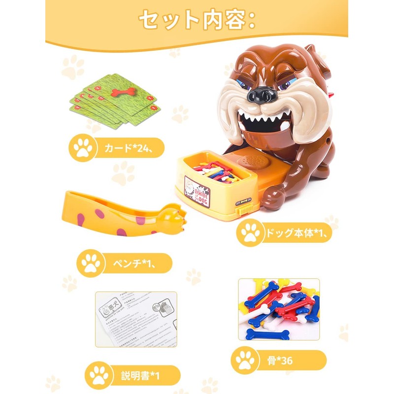 - (Fun and Exciting) Angry Bulldog will bounce up naturally when you wake up and roar fierce Mix the cards and put them into the bowl in front of the dog, players choose one card and use the clamp to remove them. The corresponding bone from the dog's bowl can also be heard the dog barking, very exciting and interesting