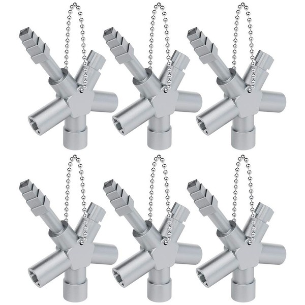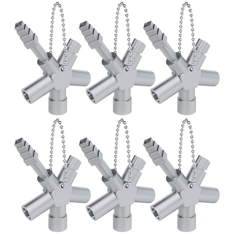 ABSINA Universal Key with 4 Profiles, Pack of 6, Triangular Key, Square Key, Control Cabinet Key, Square Triangular, Universal Key for Standard Cabinets and Locking Systems