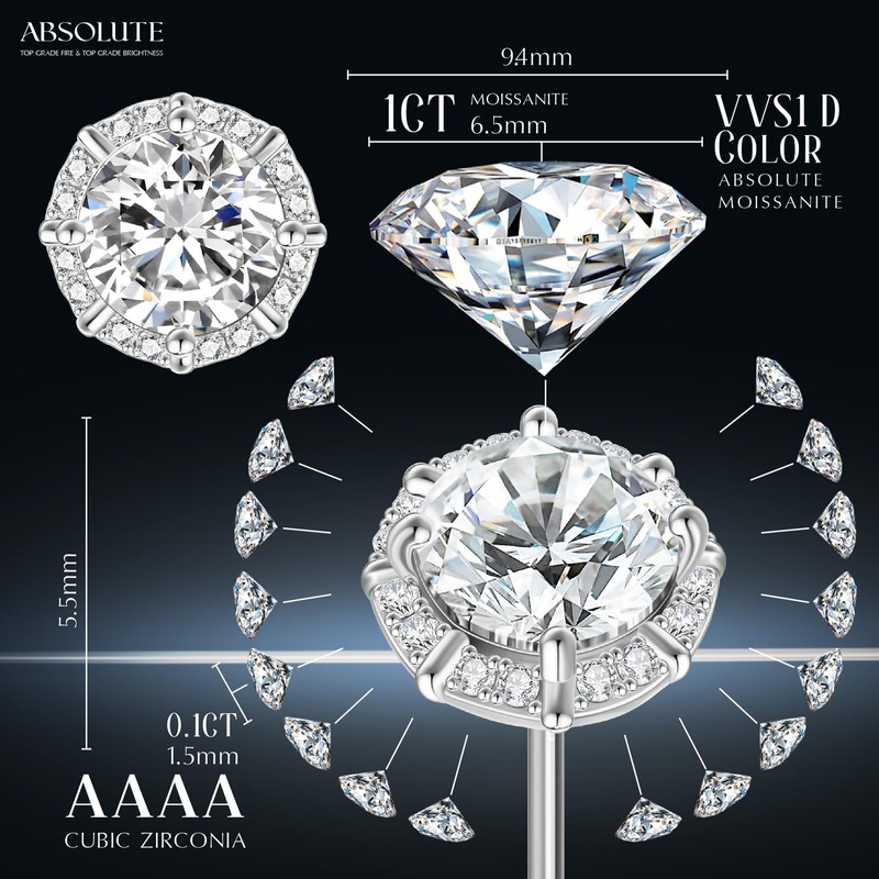 - 【Moissanite Stud Earrings】The earrings are made of Moissanite. Moissanite share the similar color, hardness and element with diamond, and 2.5 times brilliance than diamonds. Moissanite can be instrumented and come with a GRA certificate.