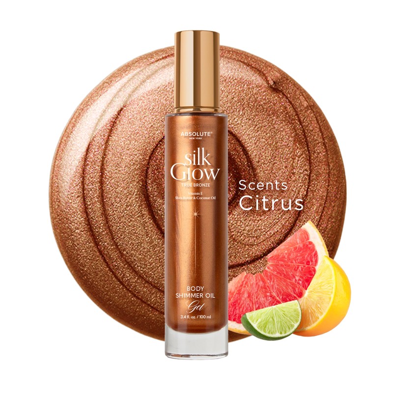 - 【FEATURES】Give skin a radiant, sun-kissed glow with Absolute New York’s Silk Glow Body Oils! Infused with Vitamin E, Shea Butter, and Coconut Oil for moisture and glow that lasts all day.