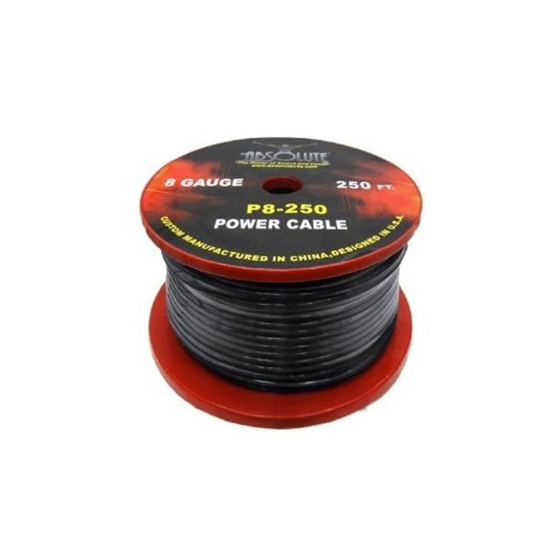 Absolute P8250BK 8 Gauge 250 feet Spool Power Wire Cable (Black)