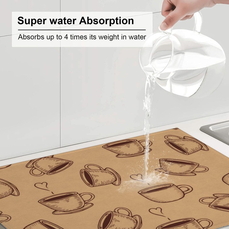 Absorbent Dish Drying Mat For Kitchen Counter, Coffee Microfiber Dish Drying ...