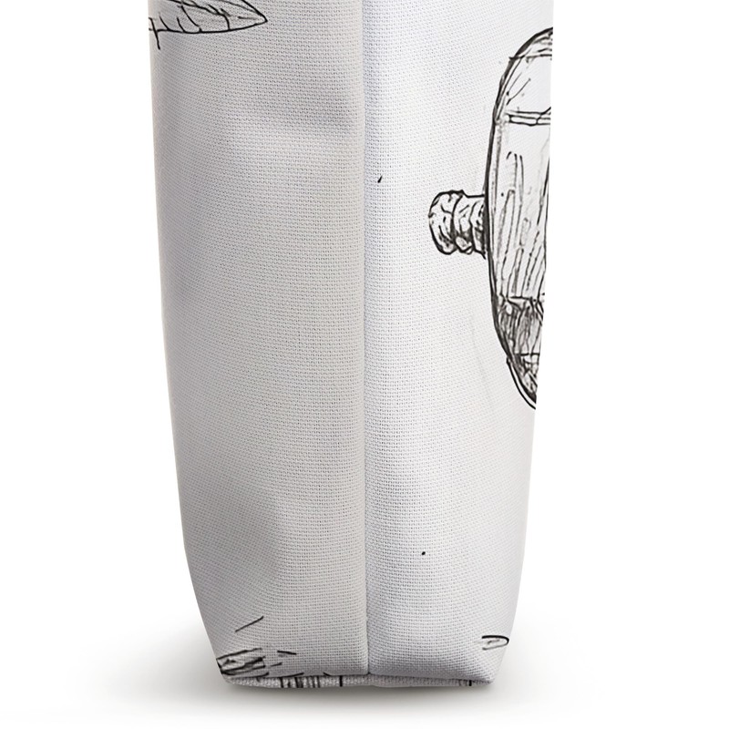 • 16” x 16” bag with two 14” long and 1” wide black cotton webbing strap handles.