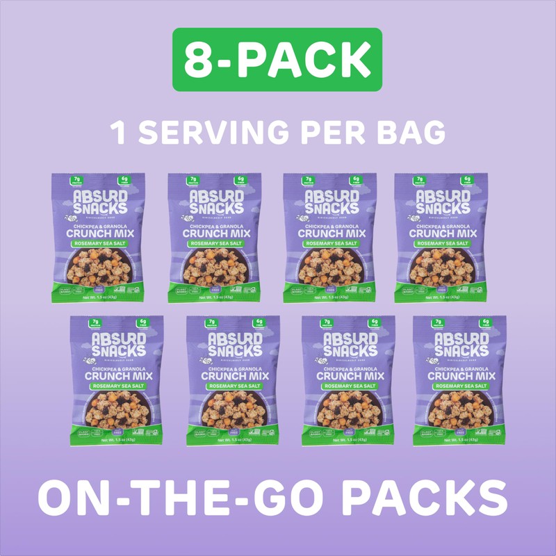Absurd Snacks Chickpea & Granola Crunch Mix, Rosemary Sea Salt, Nut-Free, Gluten-Free, Plant-Based, Good Source of Protein & Fiber, Top-9 Allergen Free Snack Mix - 8-Pack (1.5 ounce, 8 servings)