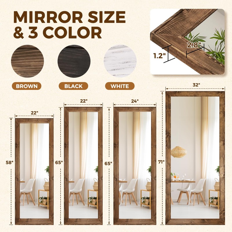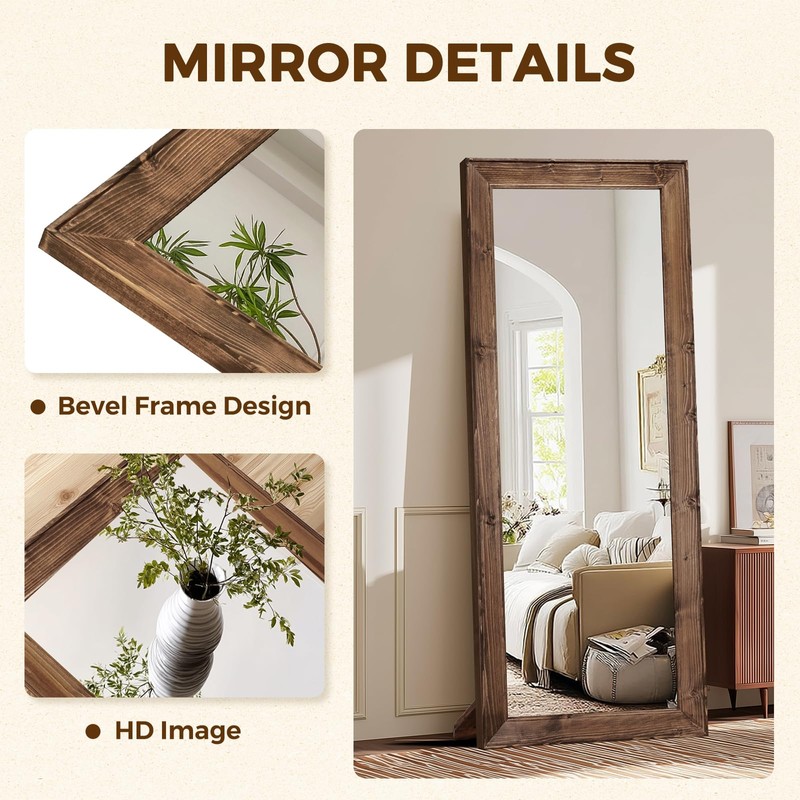 - 3-Way Placement Options: Designed for versatility, this wood standing mirror includes a built-in stand, supports leaning against a wall, or can be wall-mounted to save floor space. Suitable for various room layouts and user preferences
