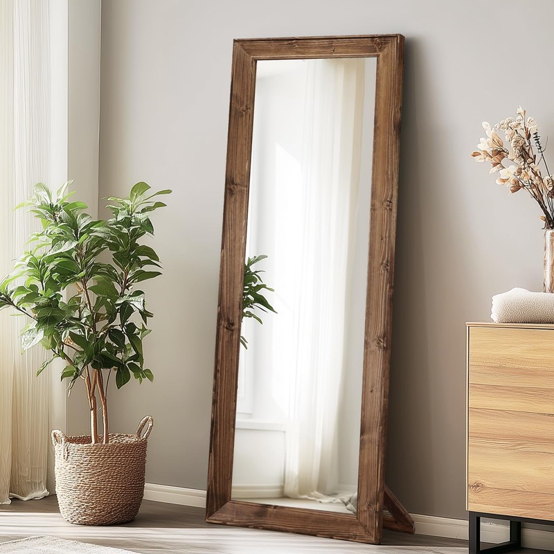 - Solid Wood Frame Durability: Crafted from premium solid wood, this full length mirror features a clean rectangular shape that ensures structural stability and timeless appeal. The wood grain offers warmth and natural beauty to modern or rustic interiors