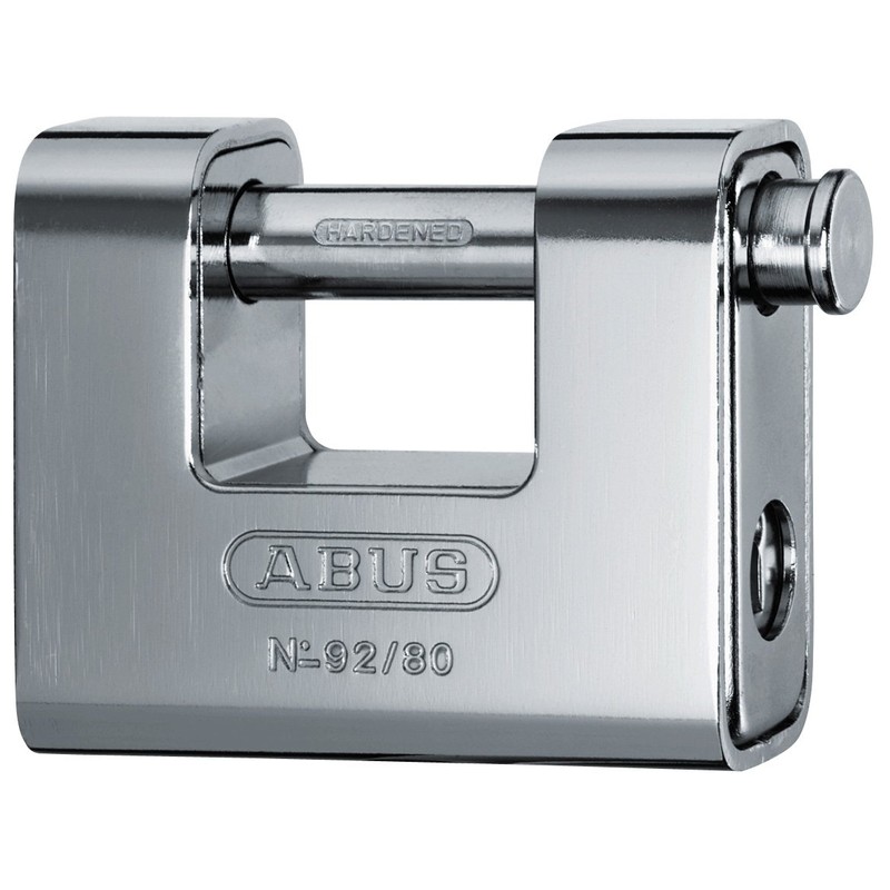 - The Abus 92 Monoblock shutter padlocks have a solid brass body encased in hardened steel jacket and a through hardened steel alloy shackle which rotates when attacked