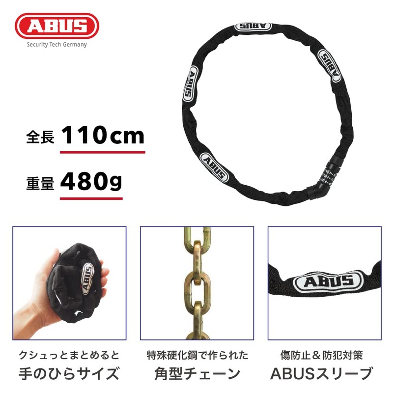 ABUS 4804C Bicycle Key Lock Road Bike Key Chain Lock Dial Type 43.3 inches (110 cm) Black