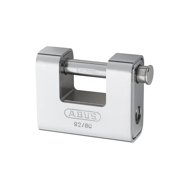 ABUS Monobloc Vorhängeschloss 92/80 gl.-8521 - gleichschließend - Messing-Schloss mit Stahlmantel - für Automaten, Rollgitter u. v. m. - mit dickem Bolzen - ABUS-Sicherheitslevel 8 - Silber