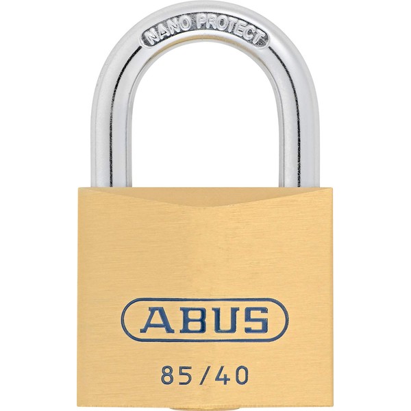 Abus 85 Series Brass padlocks, body manufactured from solid brass, high quality non-corrosive inner components. Precision pin tumbler cylinder with anti-pick mushroom pins. Hardened steel shackle for 20mm - 30mm, through hardened steel alloy shackle with NanoProtect Chrome plating on 40mm & above.