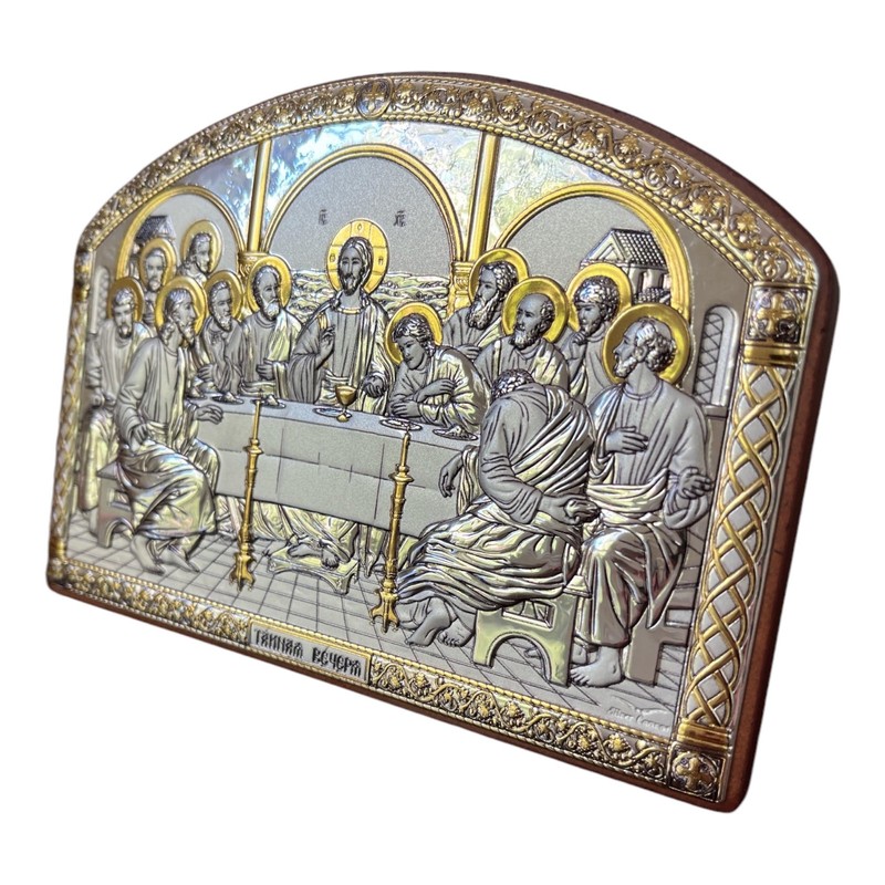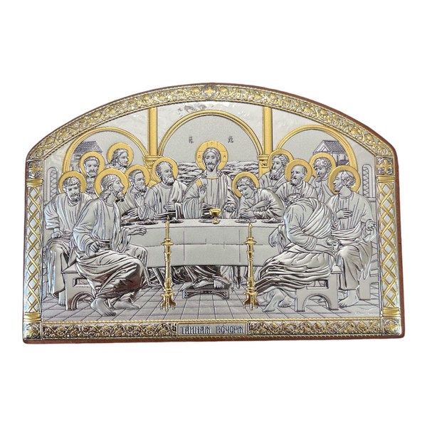 (AC-1/019G/K) Silver Christian Orthodox icon, Gilded, Last Supper, Handmade, Greece (7x5)
