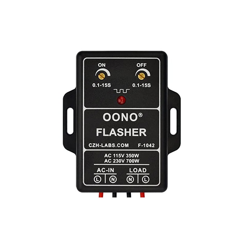 - This is a simple and practical blinking flasher module, the ON and OFF duration can be adjusted separately. The blinking flasher module is suited for resistive and inductive loads : lightbulbs, wirewound transformers for halogen lighting... (Note: the module no rectification, voltage step-up or step-down function, not suitable for DC lamps). Load on-off control uses solid-state device instead of electromagnetic relays, so there is no need to worry about the life of on-off times.