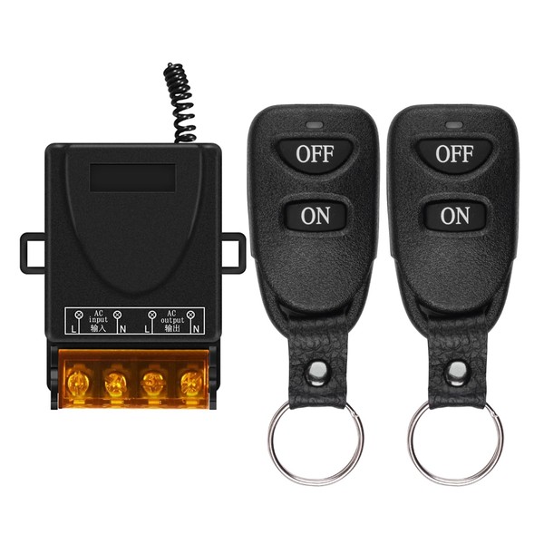 - Signal: Wireless RF signal can pass through walls, floors, doors or windows; You can use two or more units in the same place; You can turn on / off the receiver with transmitter from any place within a reliable distance(Max range is up to 164 ft / 50 m with no obstacle)