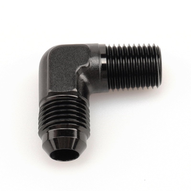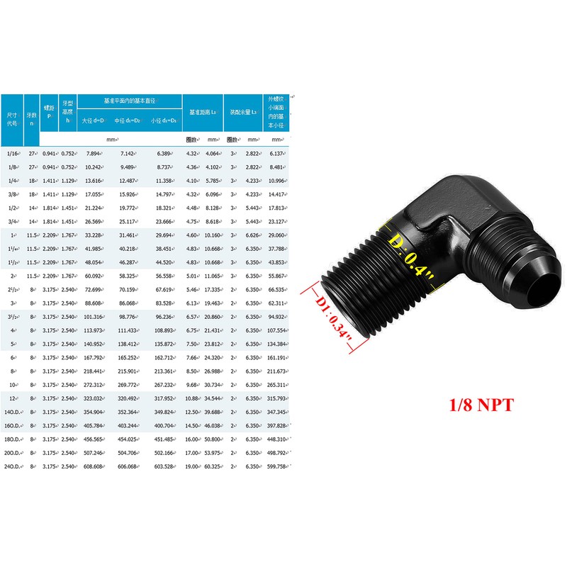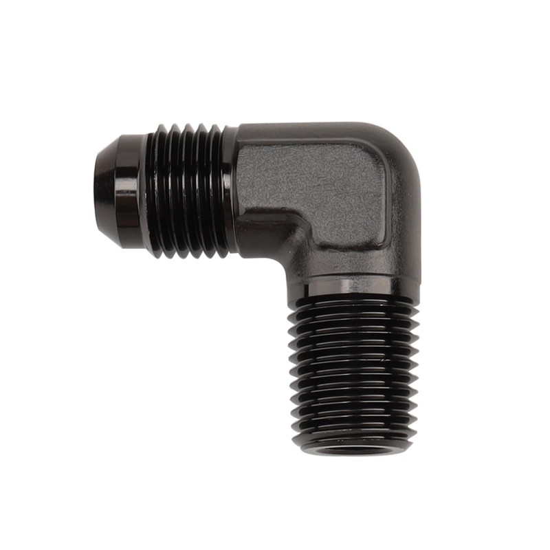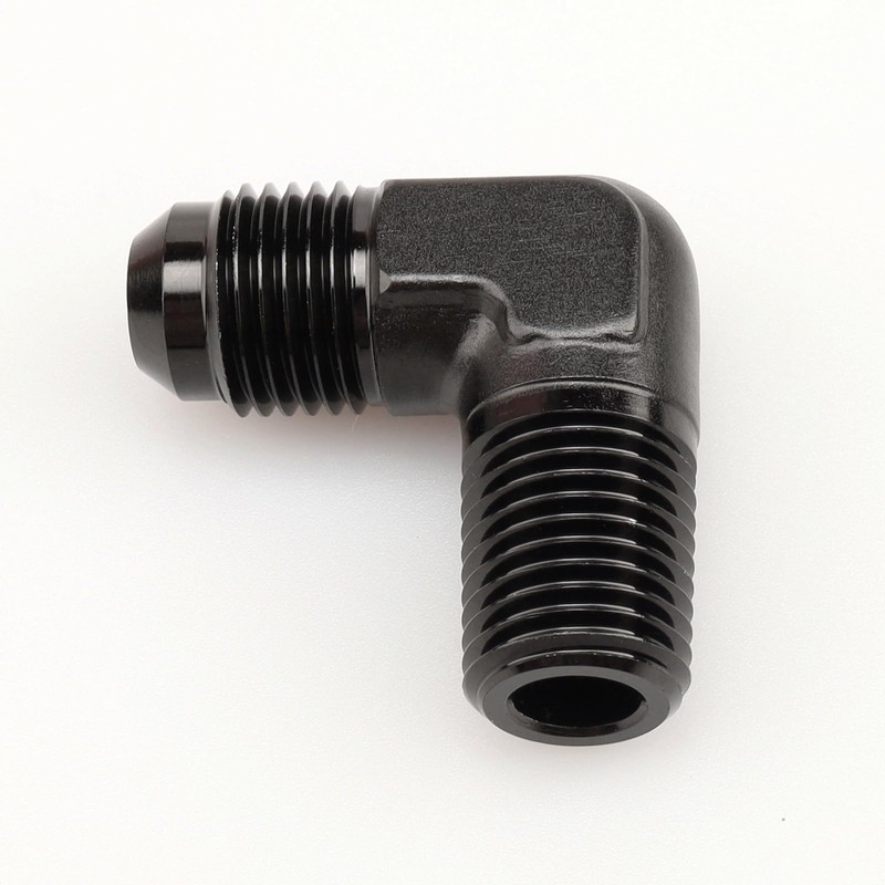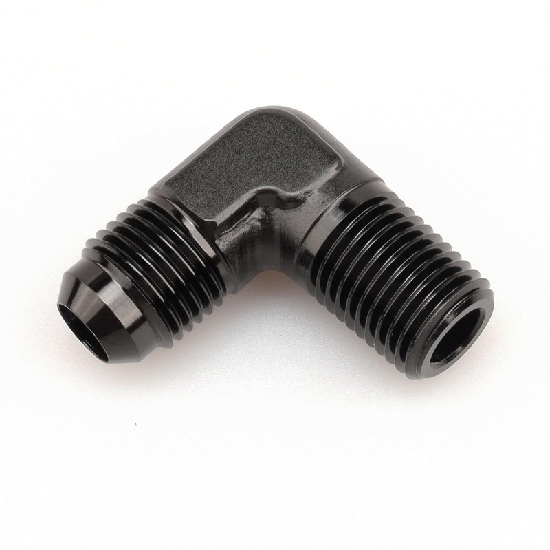 - Size: 1/8" NPT male to male -4 AN thread (JIC 4, 7/16"-20) tube adapter, Degree: 90 deg elbow