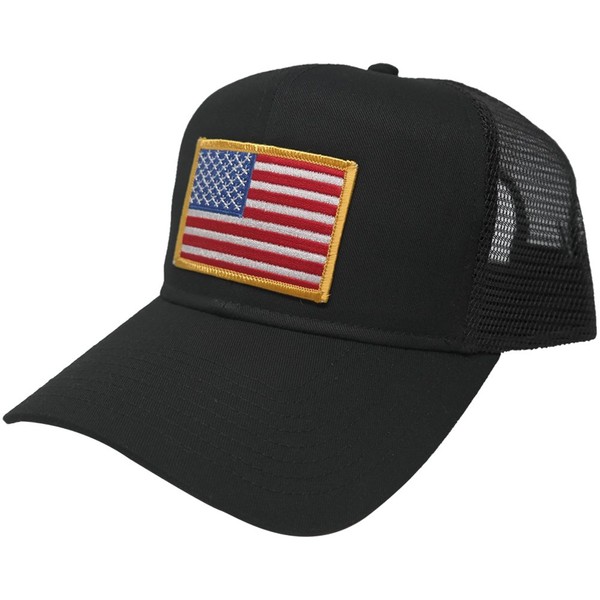 AC Racing USA American Flag Patch Snapback Trucker Mesh Cap - Black, Gold Patch