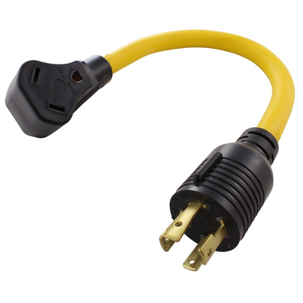 - Connects standard 30 Amp RV cord set to a generator equipped with a 30 Amp 4-Prong locking receptacle [L14-30]