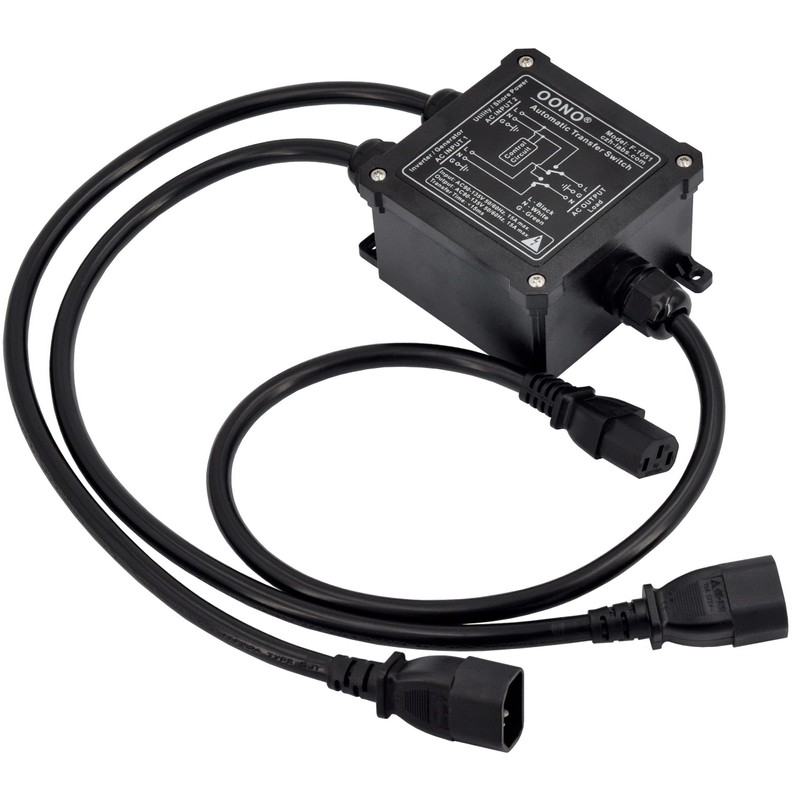 • OONO F-1051C Automatic transfer switch, an easy to mount 15Amp inline transfer relay provides switching between AC INPUT 2 (Utility or Shore Power) and AC INPUT 1 (Inverter or Generator) AC source. When AC INPUT 2 is powered, the load power will be switched to AC INPUT 2. When AC INPUT 2 is powered off, the load power will be switched to AC INPUT 1.