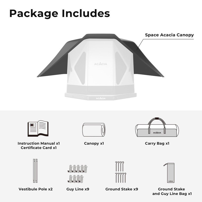 - WEATHER PROTECTION REDEFINED: Crafted from Oxford 150D material, Space Acacia Canopy can withstand rains up to 2000mm. SPF50+Sunproof coating shields against harmful rays and preserves the longevity of your tent material.